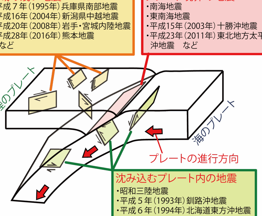 地震は主に以下の3つの種類に分類される。
