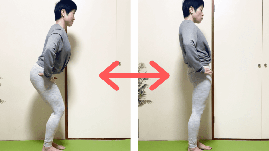 - 骨盤の位置を確認: 骨盤が前に出ているか、後ろに引っ込んでいるかを観察します。
