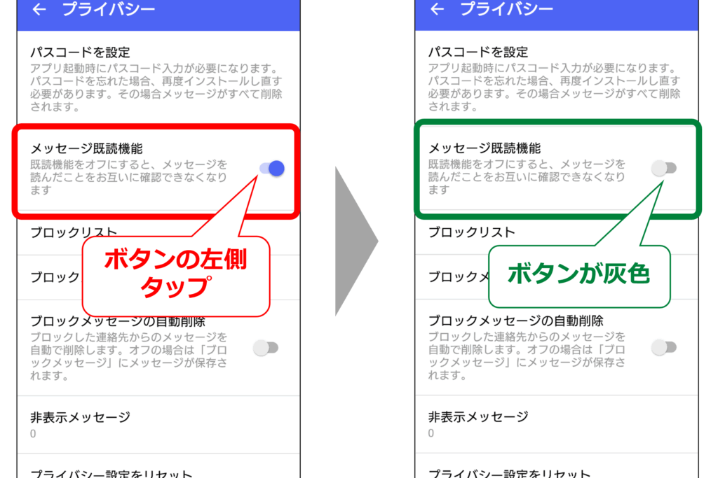 - 設定を確認:場合によっては、相手が既読を確認できない設定をしている場合がありますので、設定メニューで確認します。