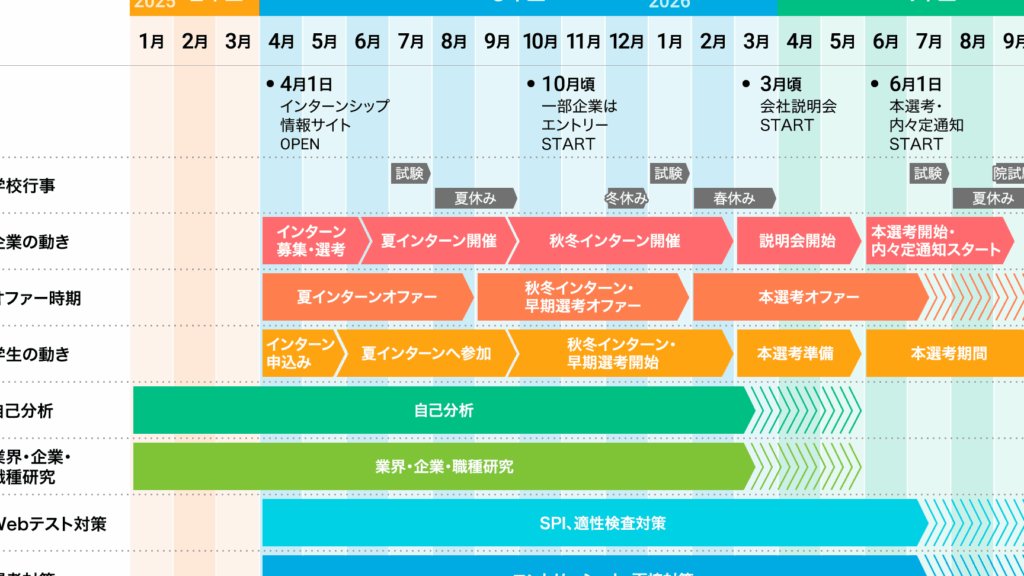 - 業界研究をする。興味がある業界のトレンドや企業情報を集め、知識を深めましょう。