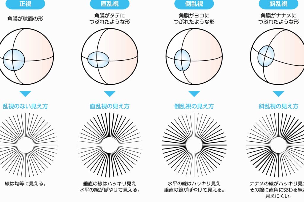 乱視とは、光が網膜に正しく焦点を結ばない状態で、視界がぼやける。通常、眼球は球状だが、乱視の場合、形が楕円形になることが多い。これにより、近くの物や遠くの物の両方が見えにくくなる。視力が不明瞭な場合、眼科医に相談することが重要だ。