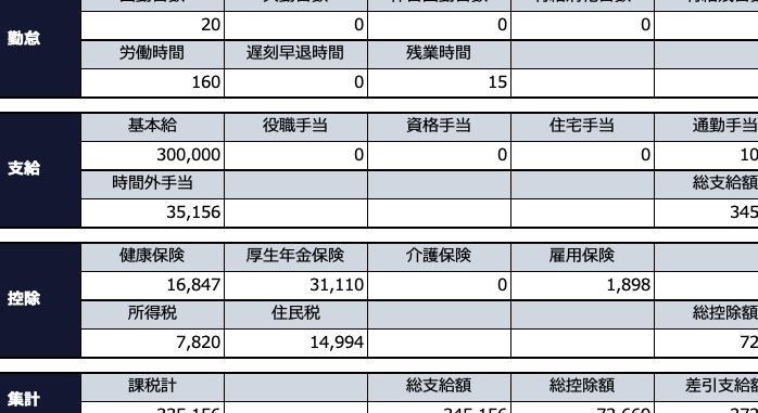 - 年収の計算: 総支給額から控除額を引き算し、最終的な年収を算出します。