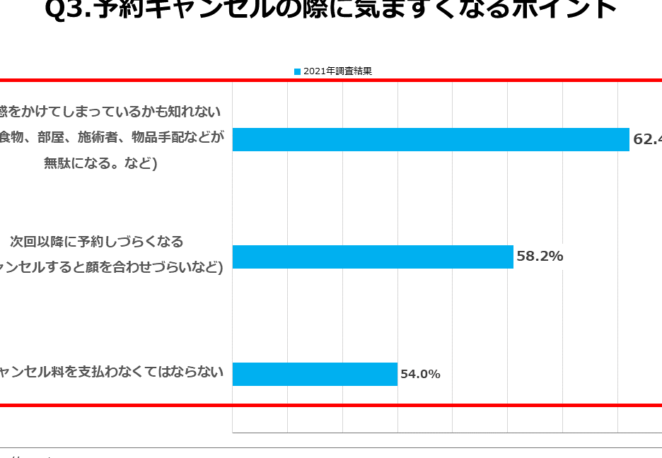 - 中止によるコストが発生することがある。店舗は、予約に基づいて仕入れや準備を進めているため、無断キャンセルは損失として計上される。