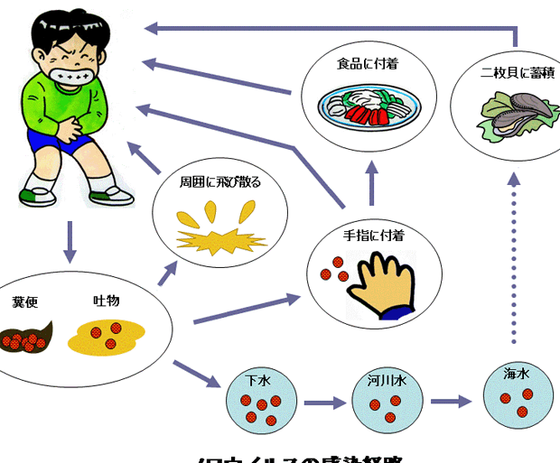 - 感染者との接触: 感染者の便や吐物に触れた後、手を洗わずに食べ物に触れると感染する可能性があります。