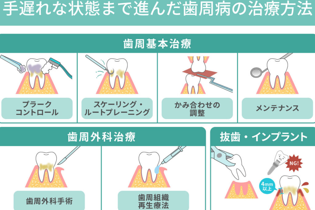 歯周病の治療には、非外科的治療と外科的治療の2つのアプローチがあります。これらの方法は、病状の進行度に応じて選択されます。