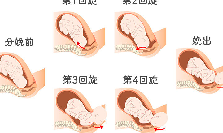 - 出産段階:赤ちゃんが産道を通り、外に出てくる。