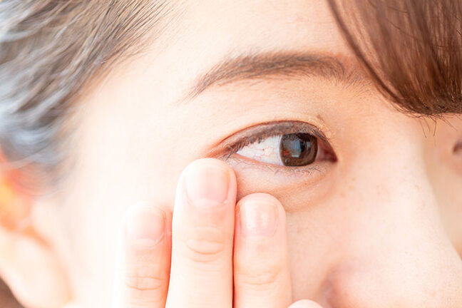 - 指の腹を使って、目元を優しくマッサージ。 目の下から上に向かって、軽く押し上げるように動かします。