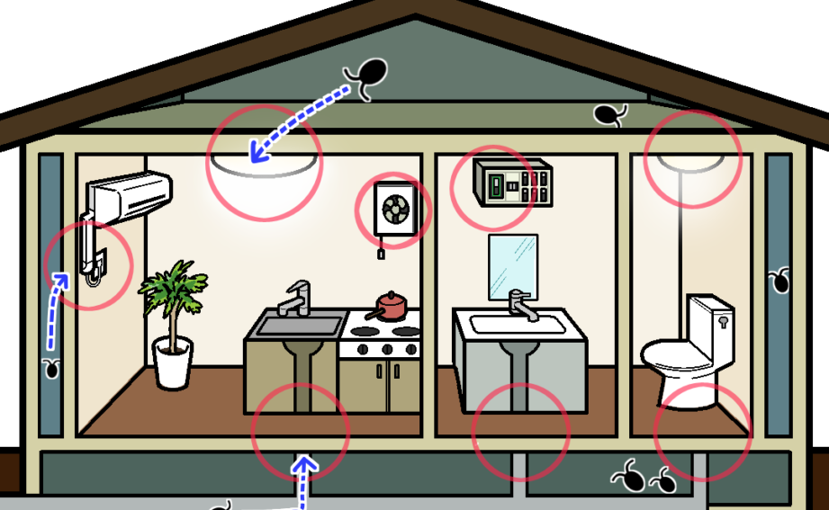 隙間を見つけ、しっかりとふさぐことが必要です。