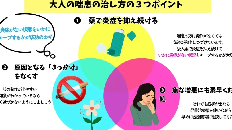 大人の喘息を管理するには、効果的な対策が必要です。日々の生活を快適に過ごすためには、発作を予防し、発作が起きたときに適切に対処することが重要です。