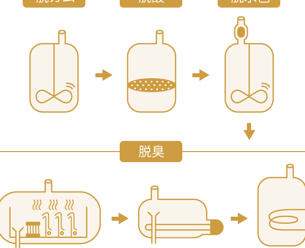 精製ごま油は、加工処理を通じて不純物を取り除いたタイプです。この工程によって、特徴的な風味が控えめになり、様々な料理に合わせやすくなります。以下のステップで精製ごま油の特性を知ることができます。