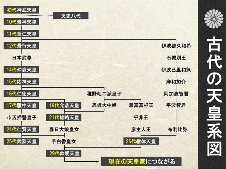 - 先代の継承:前の天皇の子供または孫が候補となる。
