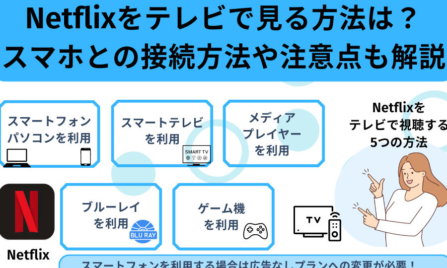 テレビでNetflixを視聴する方法には主に二つの方法があります。
