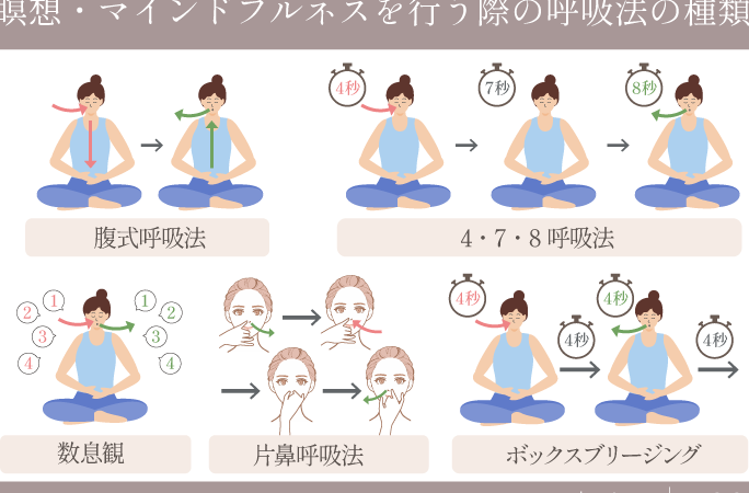 呼吸に集中することで、心を落ち着け、思考を整理できます。以下の方法を試してみましょう。