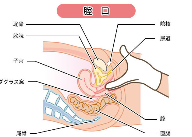 - 膣の入口に指を入れる。 ゆっくりと指を挿入し、子宮口の位置を探る。