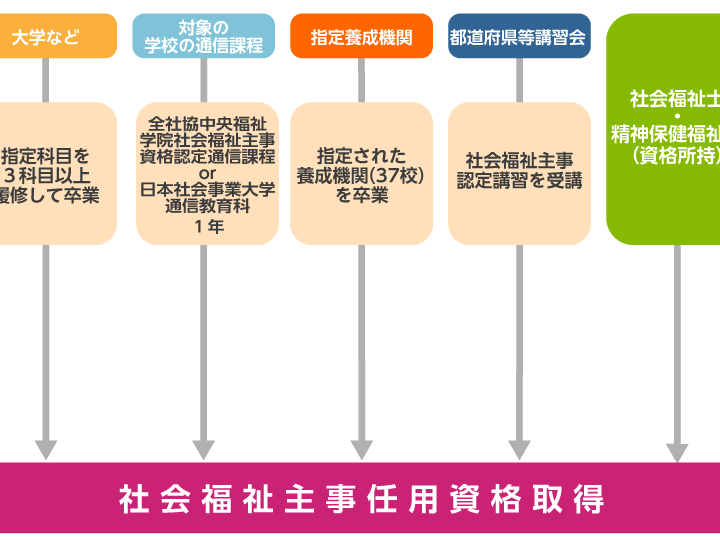 - 専門学校卒業:社会福祉関連の学科を持つ専門学校を卒業すること。