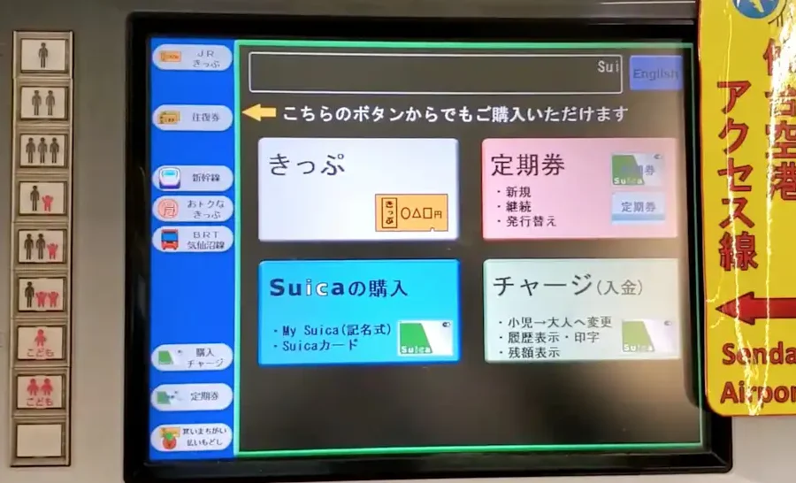 自動券売機: 各駅に設置されている自動券売機で、現金またはクレジットカードを使ってSuicaを購入できます。
