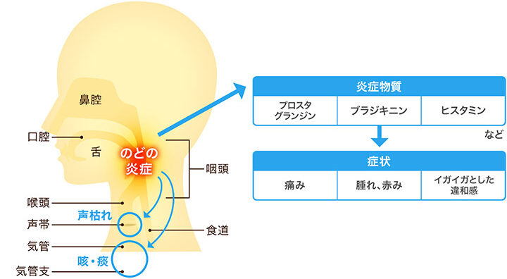 風邪やインフルエンザウイルスは、その典型的な原因です。これらのウイルスが体内に侵入すると、喉の粘膜が炎症を起こし、不快感を引き起こします。この場合、伴う症状として咳や発熱も見られることがあります。