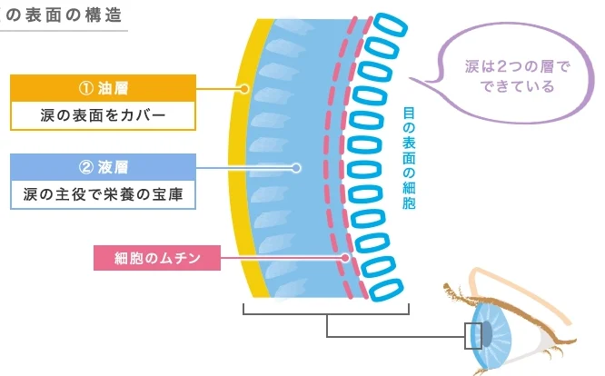 - 水分補給:体内の水分量が不足すると涙液も減少しますので、1日に2リットル程度の水分摂取を心掛けましょう。