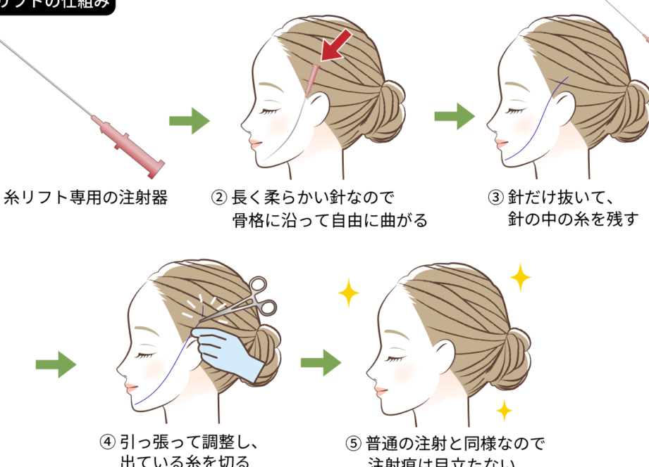 このような流れで、「糸リフトどうやる?」という疑問にもお答えできる内容となっています。我々はお客様一人ひとりに寄り添いながら、安全かつ効果的な施術をご提供しています。