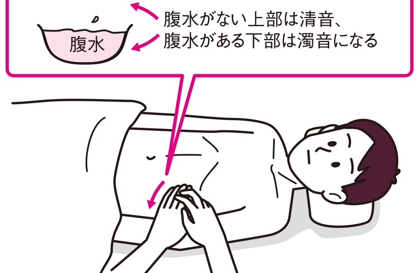 医療機関では、腹水の有無を確認するためにいくつかの検査が行われます。主な検査方法としては: