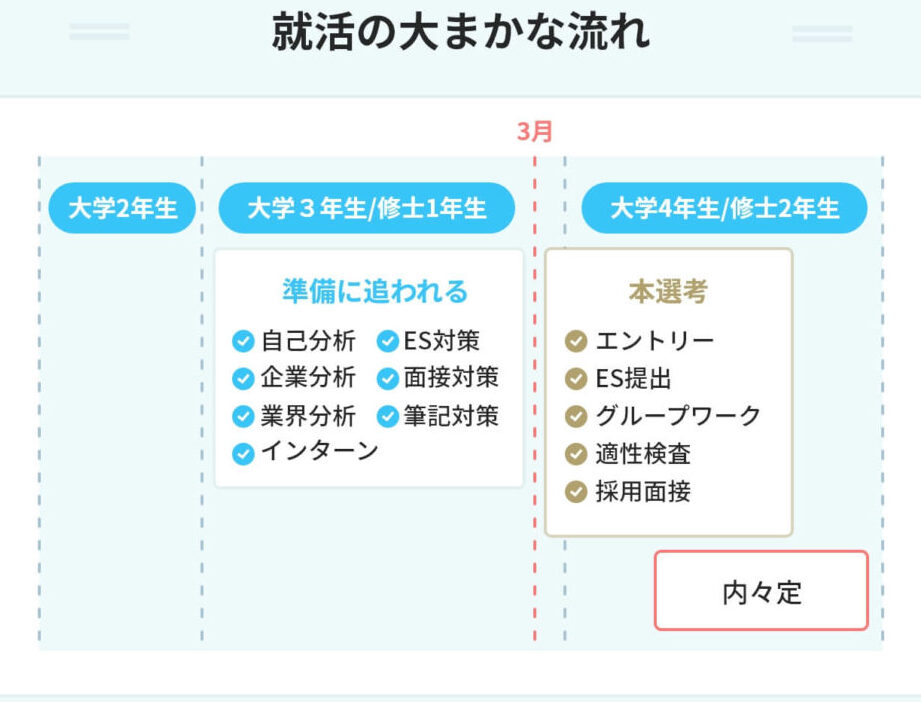 - セミナー参加: 就職関連イベントや説明会で情報収集。