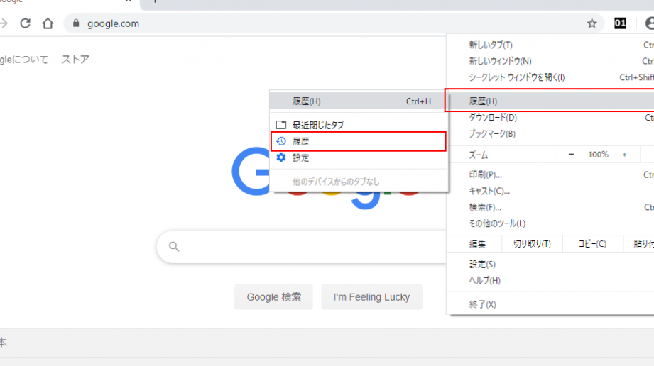 - 「履歴」を選択: メニューから「履歴」を選び、その後再度「履歴」をクリックします。