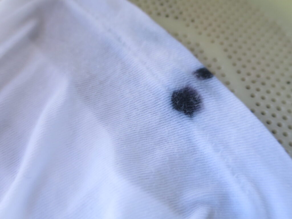 これらのシミは早めの対処が重要であり、水分を使った軽い拭き取りから始めることをお勧めします。