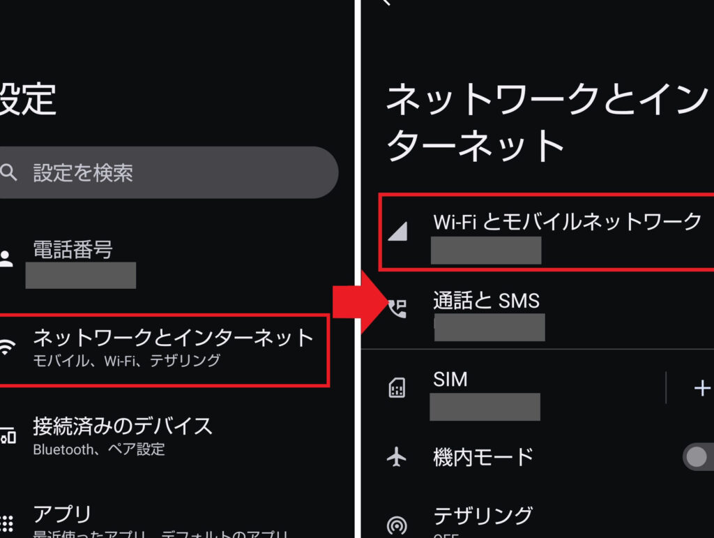- 「ネットワークとインターネット」または「モバイルデータ」を選択します。
