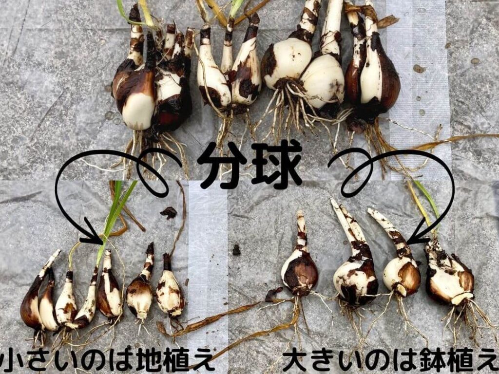 - 再植え**: 分割した球根それぞれも先ほど述べた通り、水はけの良い場所へ再度植え付けます。同様の条件下で育てましょう。