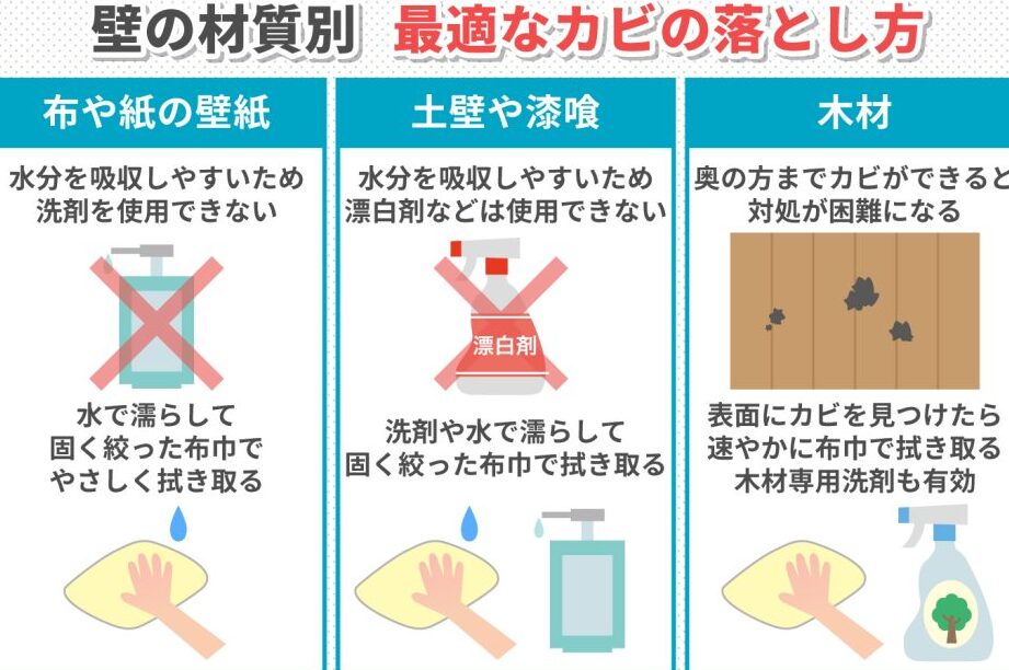 - 早期発見と対応:カビが発生した場合、早急にその場所を清掃し、安全な方法で除去します。湿度管理と換気も重要です。