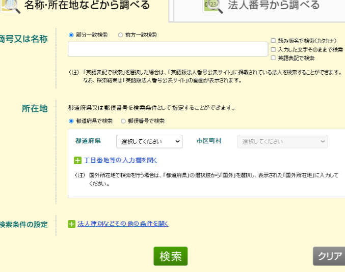 公式サイトに入ったら、検索フォームを見つけてください。ここには法人名や個人名などの情報を入力する欄があります。正確な情報を入力することが重要ですので、ご注意ください。