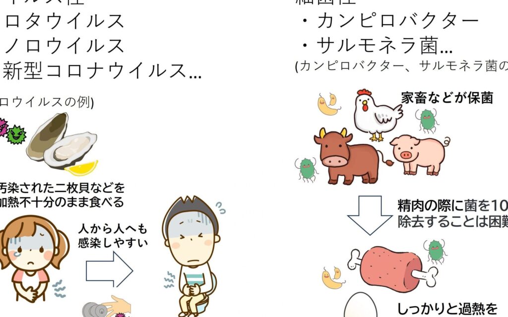 - サルモネラ菌:食材から感染することがあり、生肉や卵などで注意が必要です。