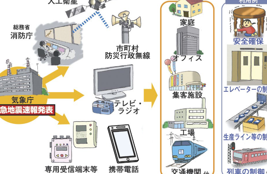 - 緊急放送システム: 日本では「J-alert」などの緊急警報システムが導入されており、このシステムによって発表された場合、自動的に音声で知らせてくれます。