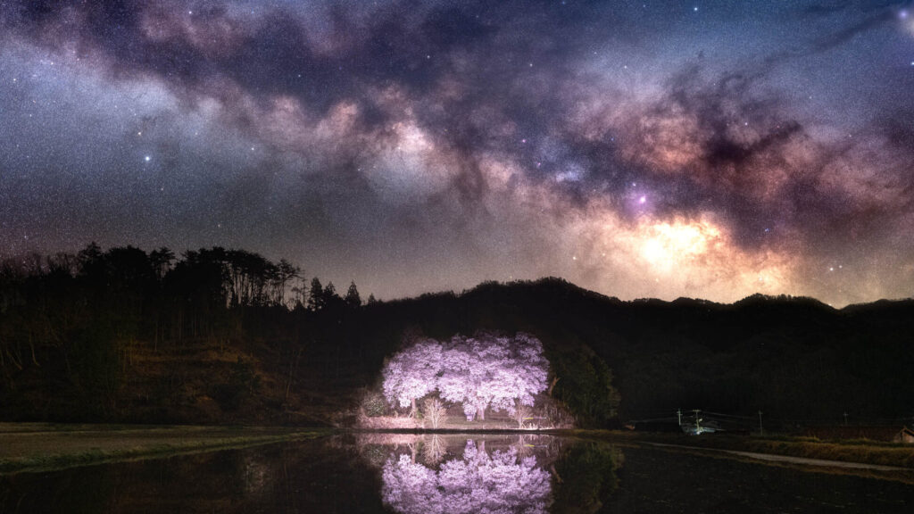 - 前景要素: 銀河だけでなく、前景に木々や山岳など自然要素を入れることで深みが増します。