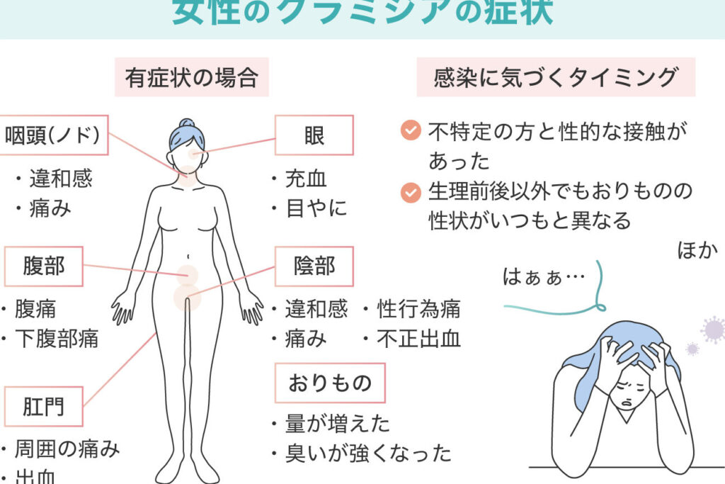 クラミジアは無症状の場合も多いため、自覚症状がないまま他人と接触することがあります。このため、知らず知らずのうちにウイルスを広げる危険性があります。また、この性感染症(STD)は、一度感染すると再発しやすい傾向がありますので注意が必要です。