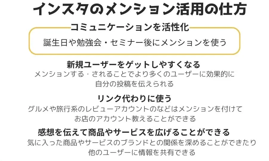 大事なイベントやキャンペーン時にメンションすることで、更なる注目を得ることも可能です。この方法では次のような点に留意しましょう: