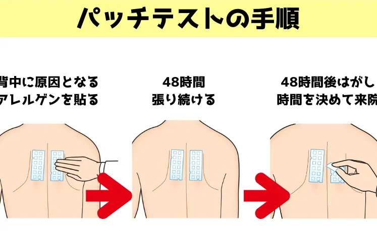 - 反応観察: 15〜30分後に医師が現れ、赤みや腫れなどの反応を確認します。結果はその場でわかることも多いです。