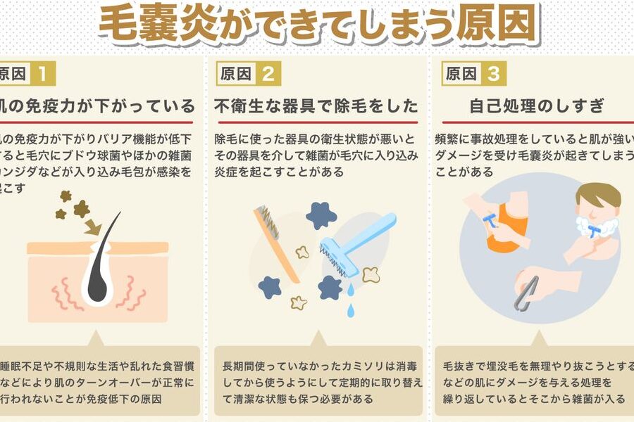 また、一部の生活習慣や環境要因も毛嚢炎を悪化させることがあります。具体的には以下のような点です: