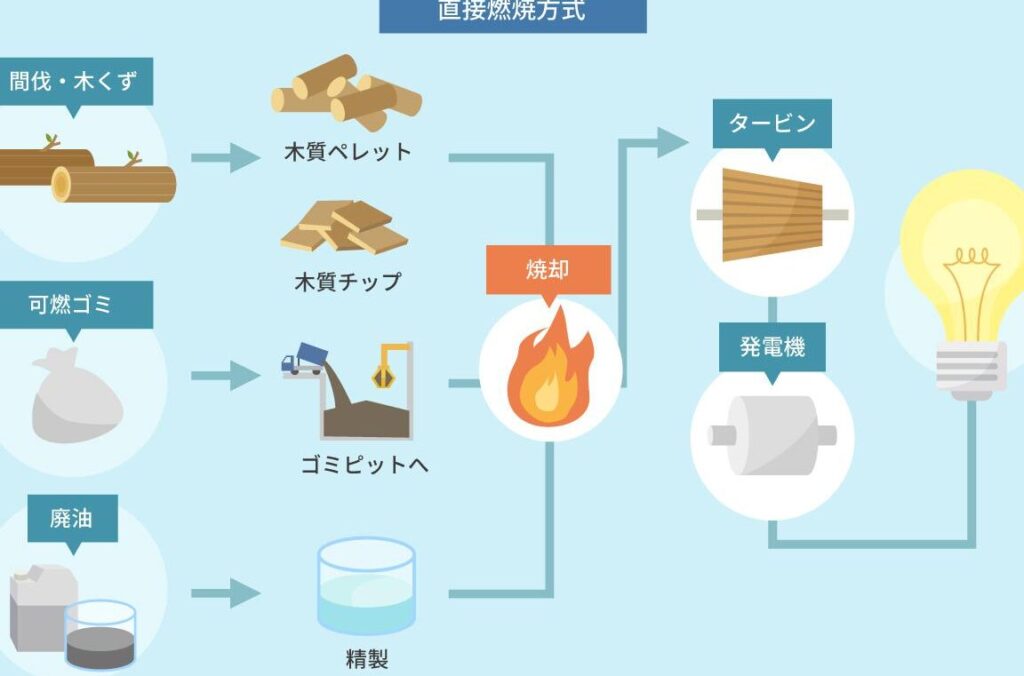 - 生物化学的プロセス:微生物による発酵などで有機成分からエタノールやメタンなどの燃料を生成します。