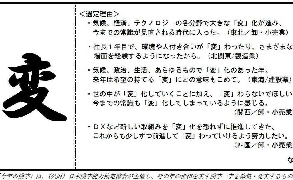 - 流行語: SNSで話題になった言葉なども影響し、新しい価値観を象徴する漢字として浮上します。