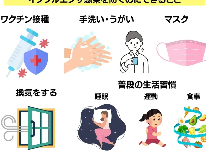 - ワクチン接種: インフルエンザワクチンは毎年接種することで、高い予防効果が期待できます。特にリスクグループに属する方は優先的に受けるべきです。