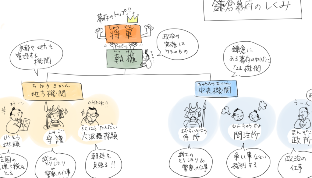 - 裁判制度: 地方には地頭(じとう)が置かれ、その地域内で発生した問題について裁判を行う権限が与えられました。