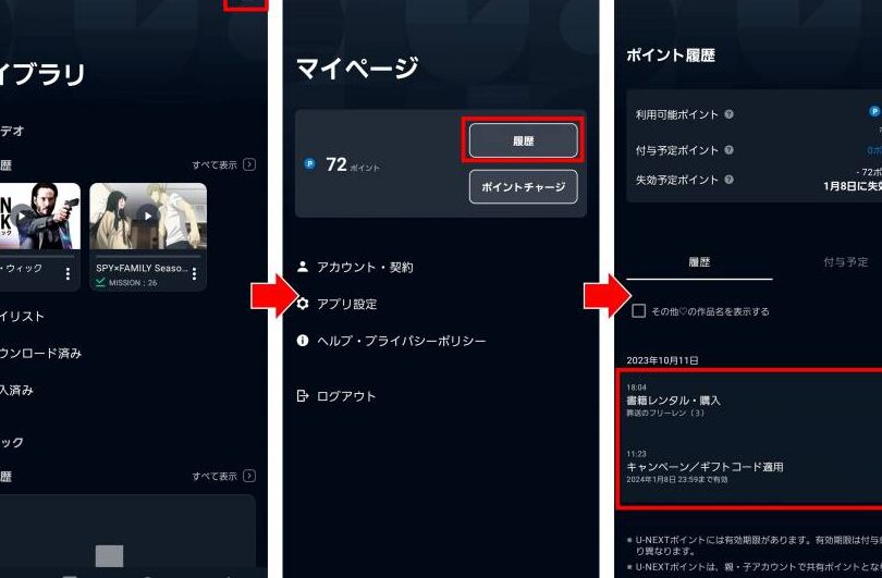 まず、U-nextのポイントには有効期限があります。通常、付与されたポイントは一定期間内に使用しないと失効してしまうため、計画的に活用することが求められます。この点について具体的な例を見てみましょう: