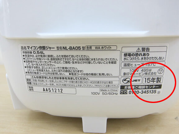 象印の炊飯器の製造年はどうやって調べますか?基本情報
