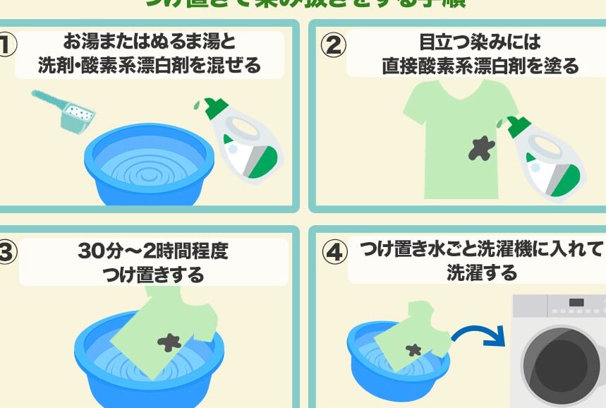 - 時間を置く: 約30分ほど浸け置きし、その後通常通り洗濯機で洗います。