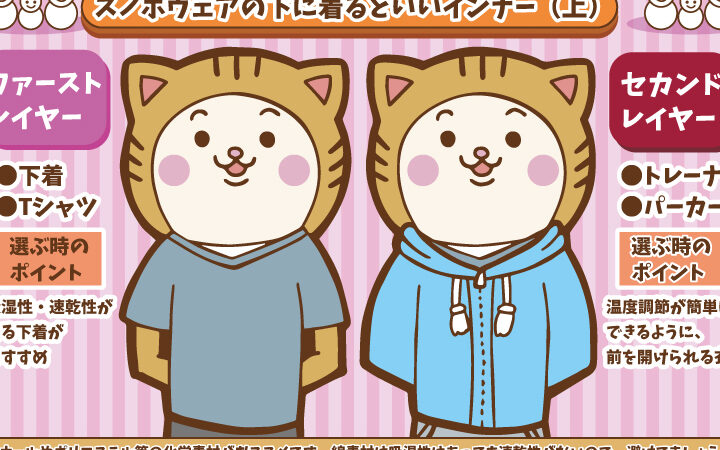 - 各レイヤーはフィット感が重要です。特に動きやすさには気を付けましょう。