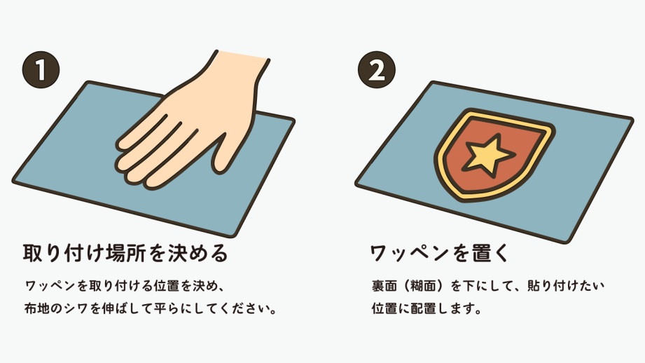 アイロンでワッペンをつける場合、以下の手順が基本となります。