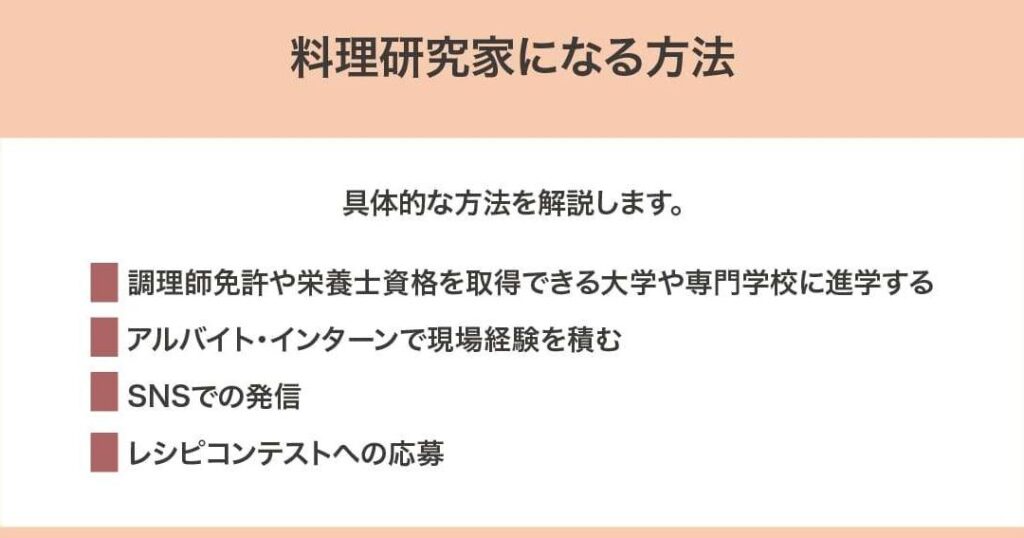 さらに、「料理調査家」になるには以下の知識と経験も不可欠です: