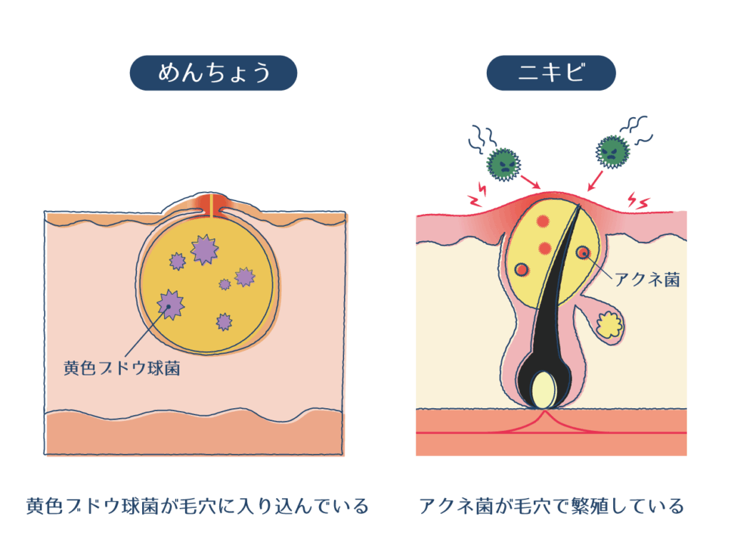 - 細菌感染:特定の細菌(例:黄色ブドウ球菌)が毛穴から侵入し、感染を引き起こすことがあります。
