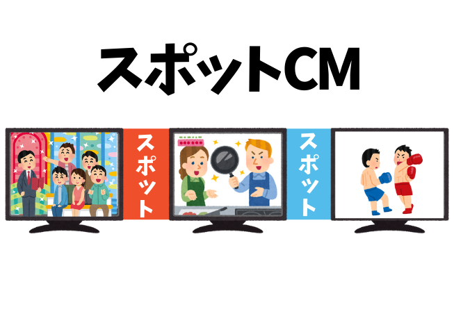- スポット広告: 短時間で放送されるCMで、多くの場合人気番組中に流されます。